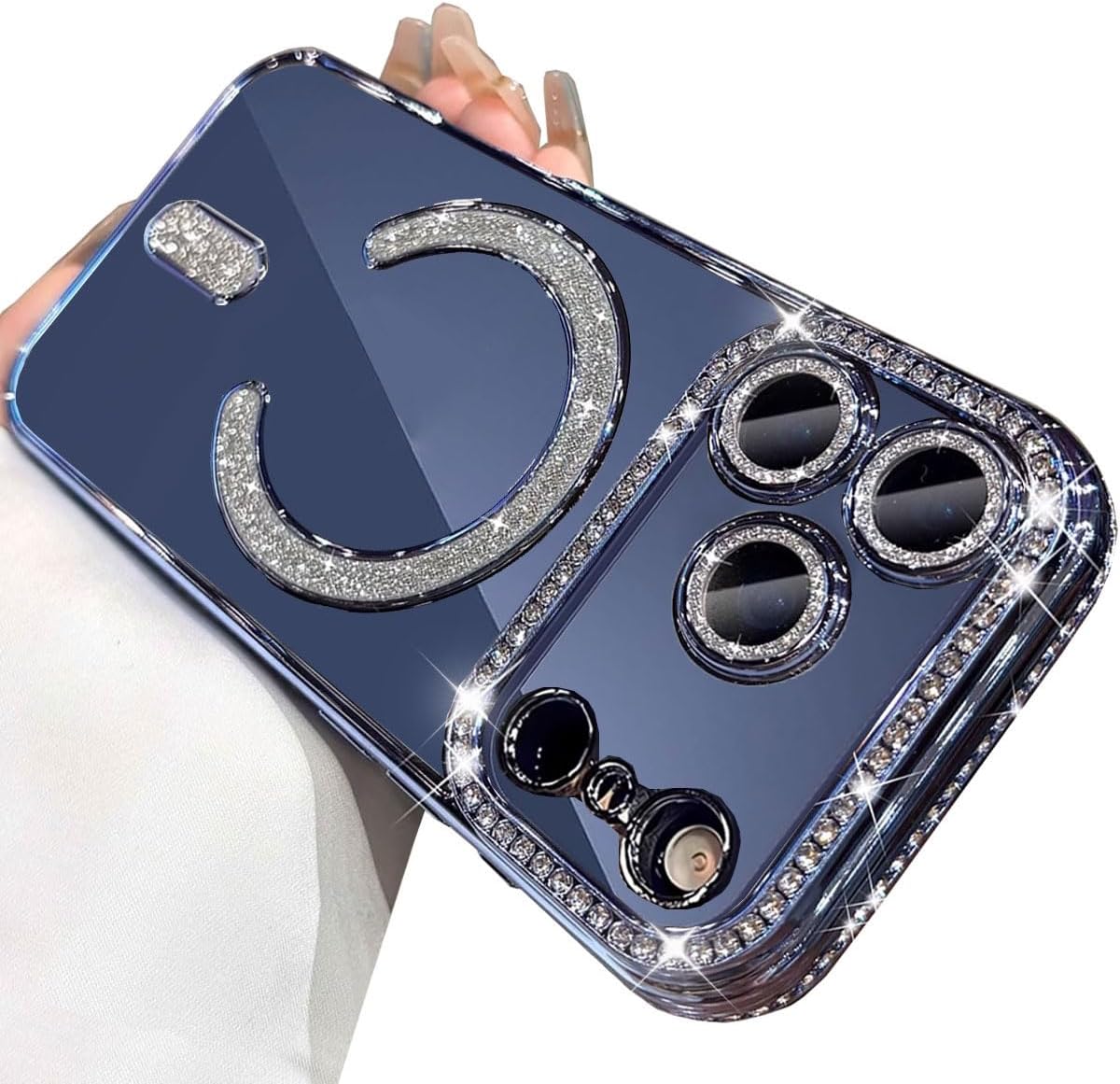 ![for iPhone 17 Pro Max Case Magnetic, [Compatible with MagSafe] Women Cute Clear Glitter Bling Diamond Rhinestone Sparkly Case Camera Lens Protectors Plating Cover 6.9'' 2025, Blue - Image 2](https://m.media-amazon.com/images/I/71A7yF6bKHL._AC_SL1200_.jpg)