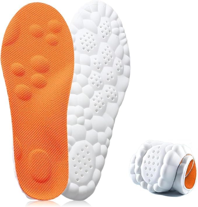 - This 4D Memory Foam Insoles Strategically placed cushions in the heel and forefoot absorb impact with every step, helping reduce joint fatigue and foot pain