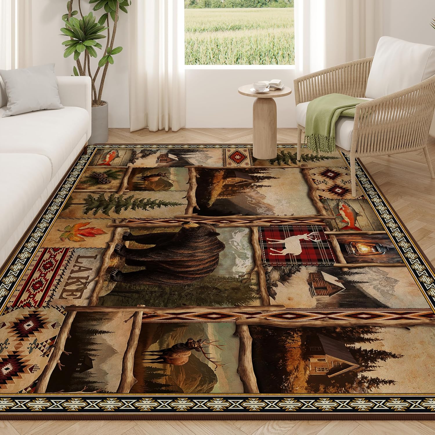 - Non Slip Rug: rustic lodge carpet for living room with non-slip backing can effectively keep in place, not easy to move, reinforced edges prevent fraying, ensuring that the rug remains intact