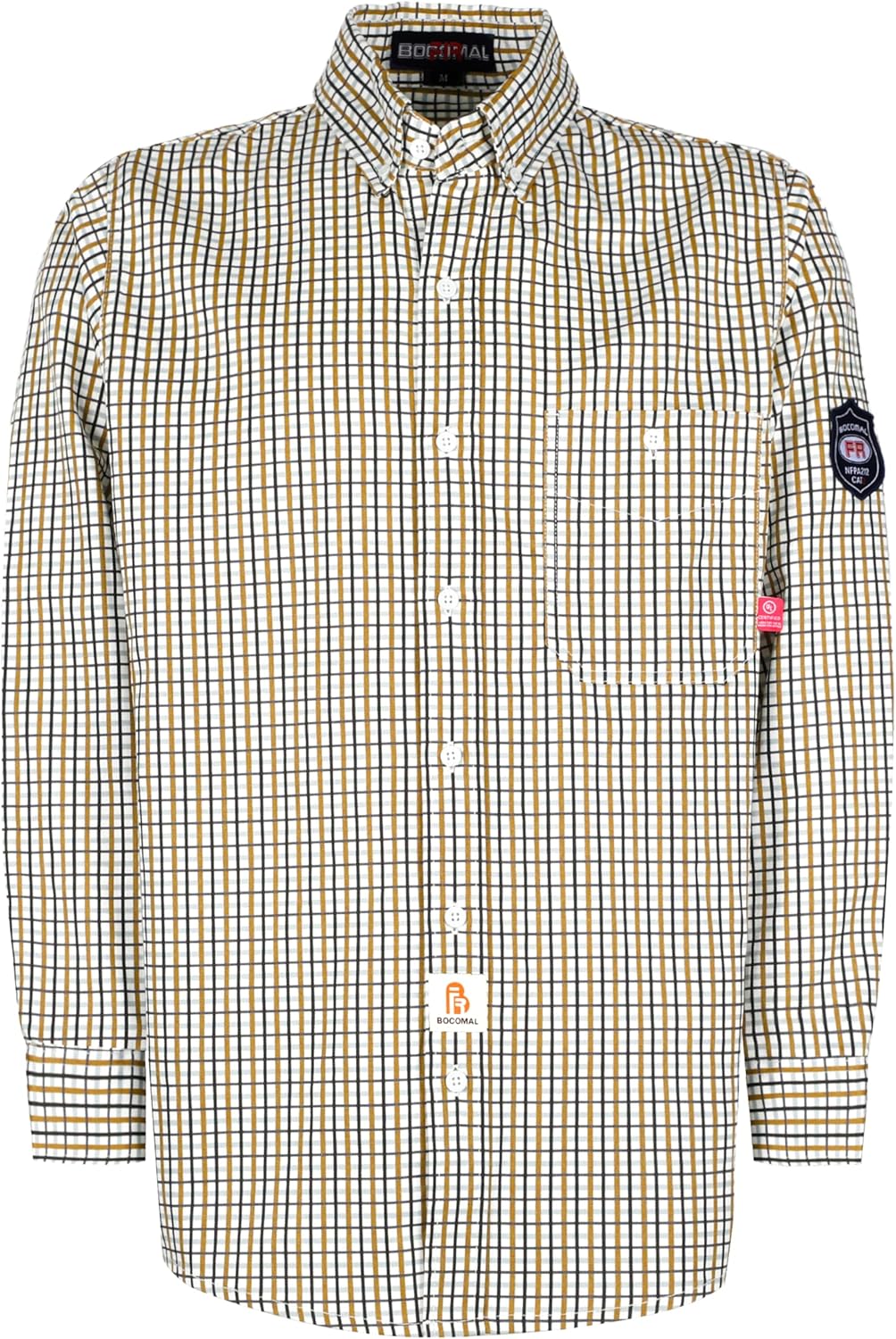 BOCOMAL FR Shirts for Men Printed Plaid Flame Resistant Clothing 6.5oz Cotton Button Up Welding Shirts NFPA2112 CAT2