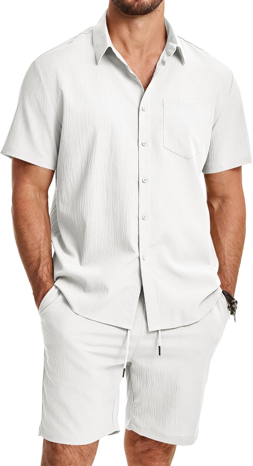 JMIERR Mens 2 Piece Short Sets Short Sleeve Shirts and Shorts Summer Beach Vacation Texture Outfits