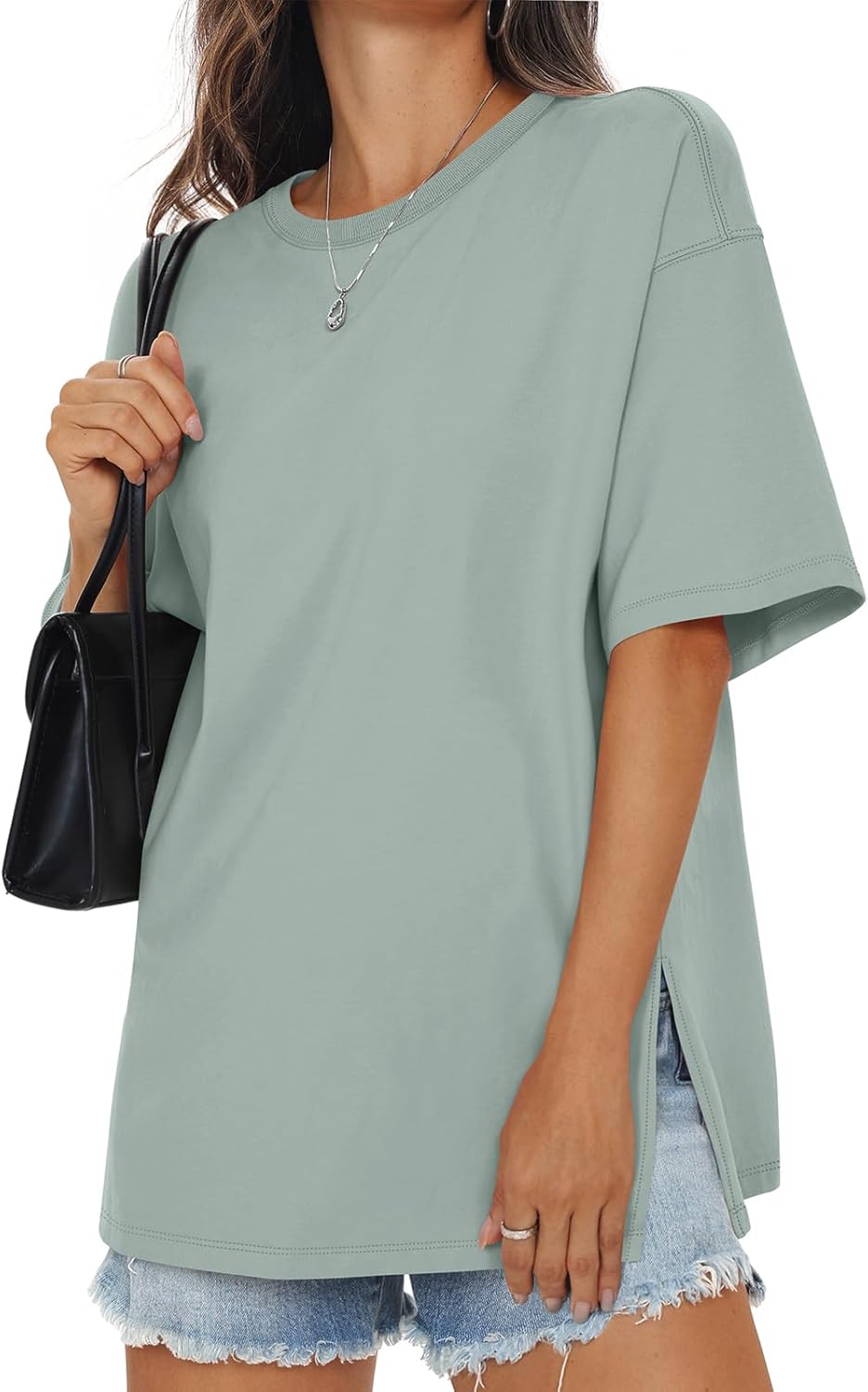 Womens Cotton Oversized T Shirts Side Slit Tops Loose Fit Tee Crewneck Short Sleeve Summer Clothes 2026