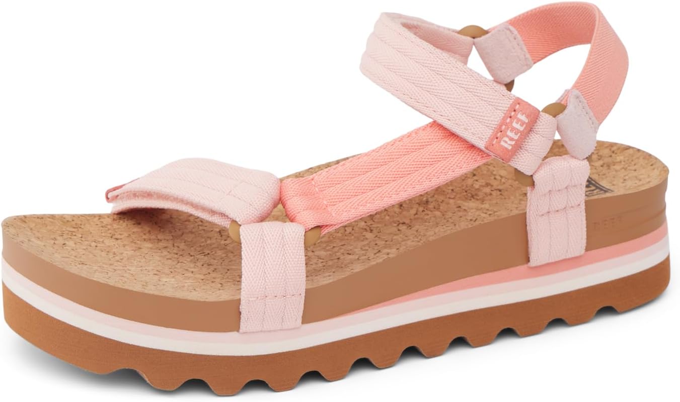 REEF Cushion Rem Hi Womens Platform Sandal, Adjustable Strap, Arch Support and Heel Cupping, Coral Duo, 8.5
