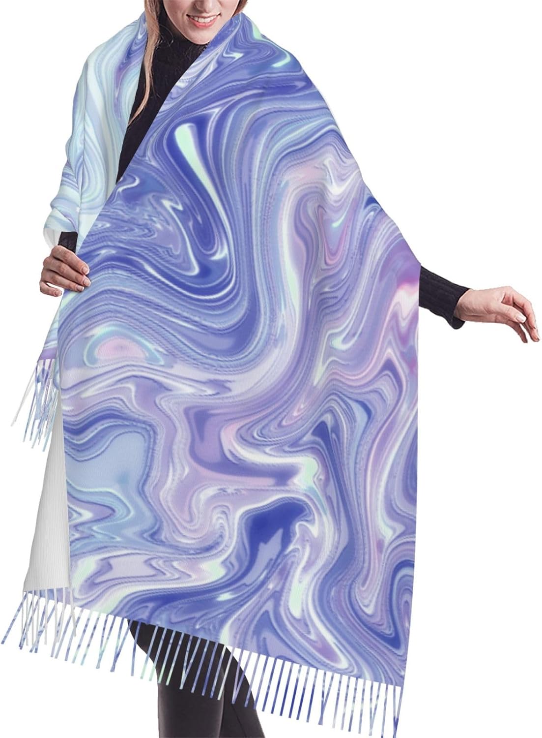 Leopard Skin Scarf Soft Faux Cashmere Fringe Shawl – Lightweight Fringe Wrap for Women 77 x 27 in
