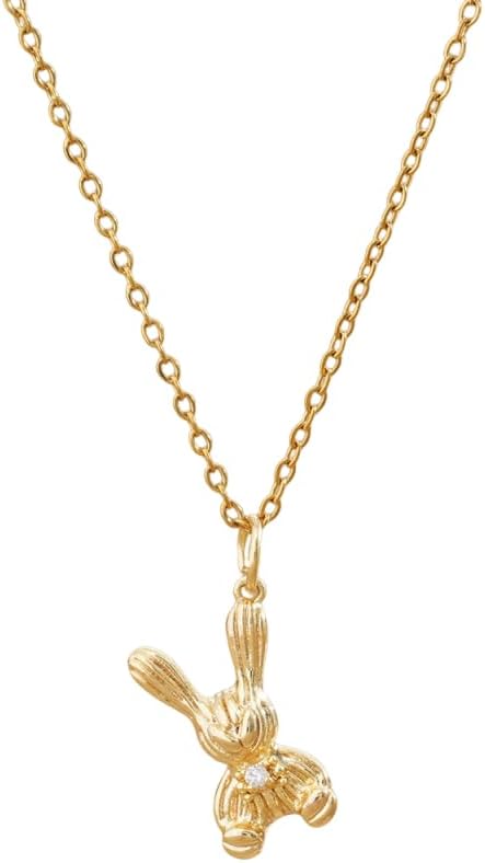 Dainty Rabbit Charm Stainless Steel Necklace for Women Cute Easter Day Doll Bunny Pendant Crystal Animal Adjustable Chain Clavicle Choker Adorrable Festival Holiday Jewelry for Girlfriend Daughter