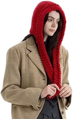 Women Chuncky 2-in-1 Hat and Scarf Thicken Winter Hat with Ear Flap Warm Balaclava Windproof Neck Warmer Scarf Cape Trendy