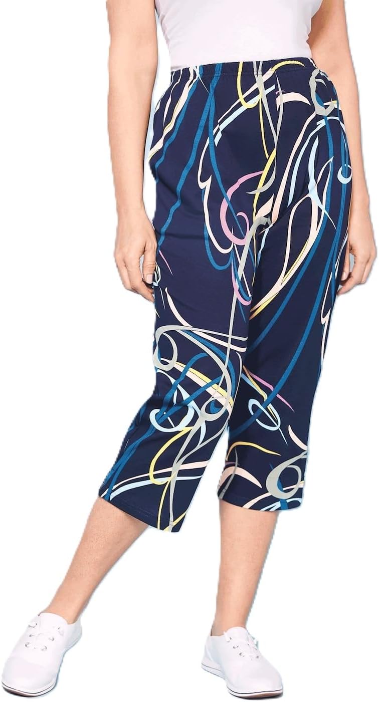AmeriMark Women’s Capri Pants - Full Elastic Waist Pedal Pushers - Ladies 100% Cotton Pull-On Cropped Pants - Side Pockets
