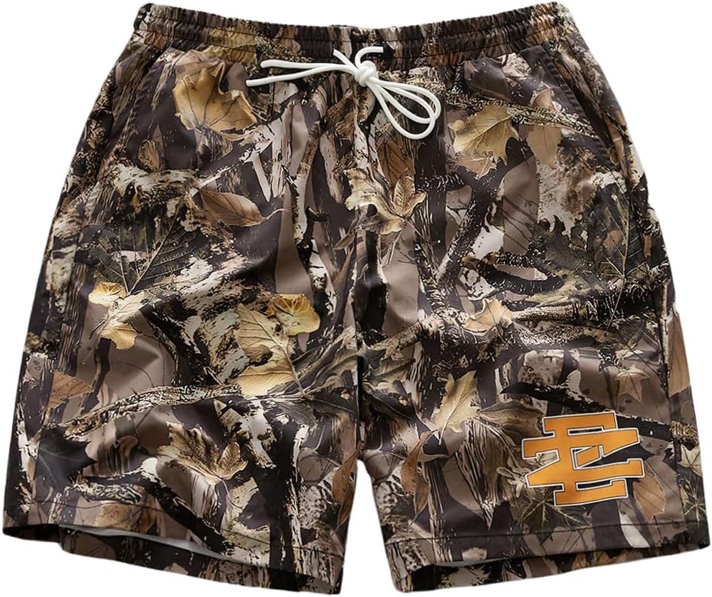 GORGLITTER Men's Camo Shorts Y2K Graphic Drawstring Waist Gym Track Shorts with Pockets