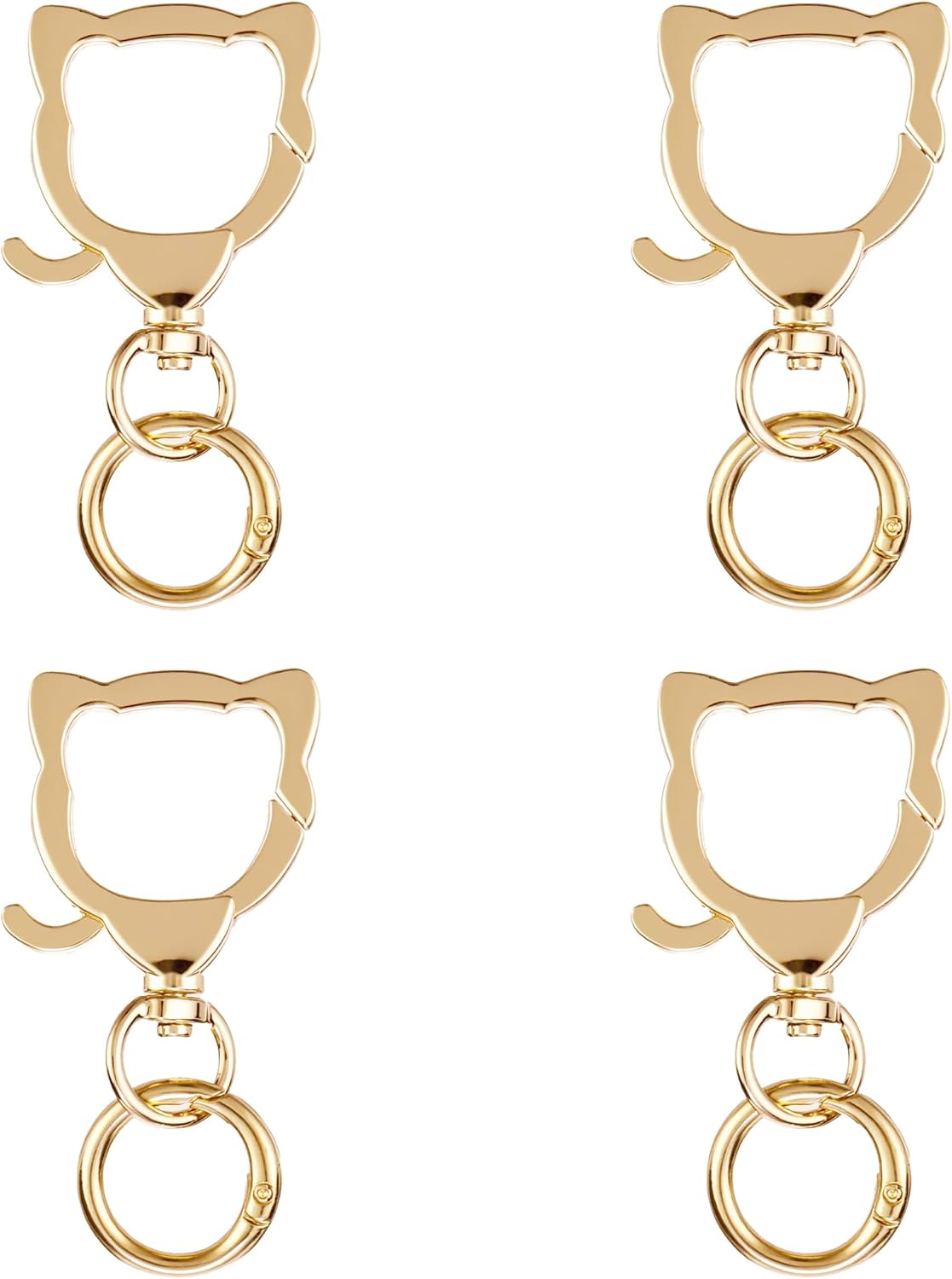 WTYONZEL 4Set Swivel Clasp Clip,Cat Shape Metal Double Opening Key Chain Clip,Swivel Spring Snap Hooks for Jewelry Clasps,DIY Crafts,Lanyard Making(Gold)