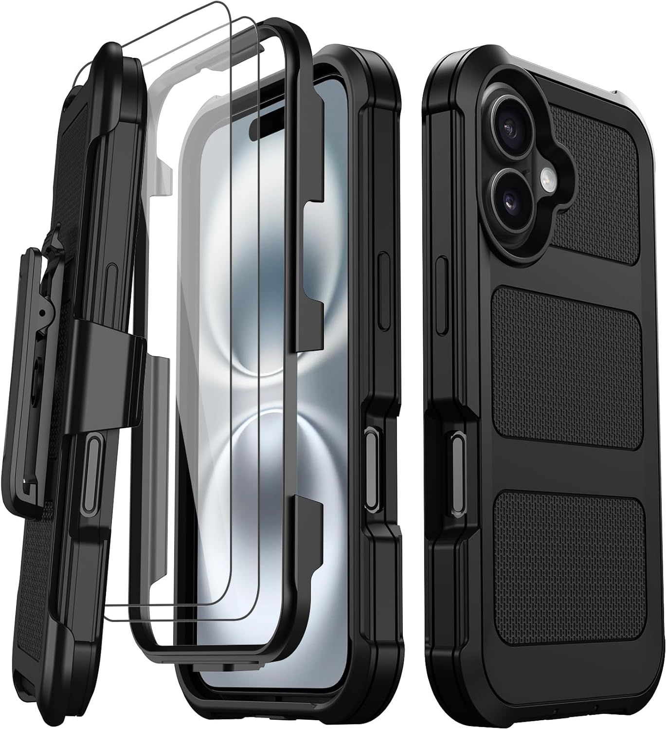 ![for iPhone 16 Plus Case with 2X Screen Protector + [Kickstand & Belt Clip Holster], Military-Grade Drop Protection Hard Bumper Heavy Duty Shockproof Phone Case for iPhone 16 Plus (Black)](https://m.media-amazon.com/images/I/71j6LIw3FsL._AC_SL1500_.jpg)