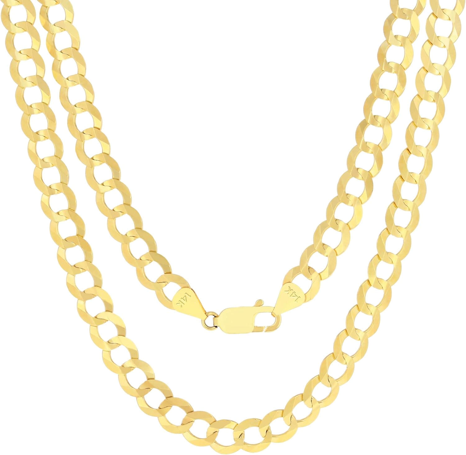 Nuragold 14k Real Yellow Gold Solid Cuban Curb Link 8mm Chain Necklace (18"-30") Italian Jewelry for Men