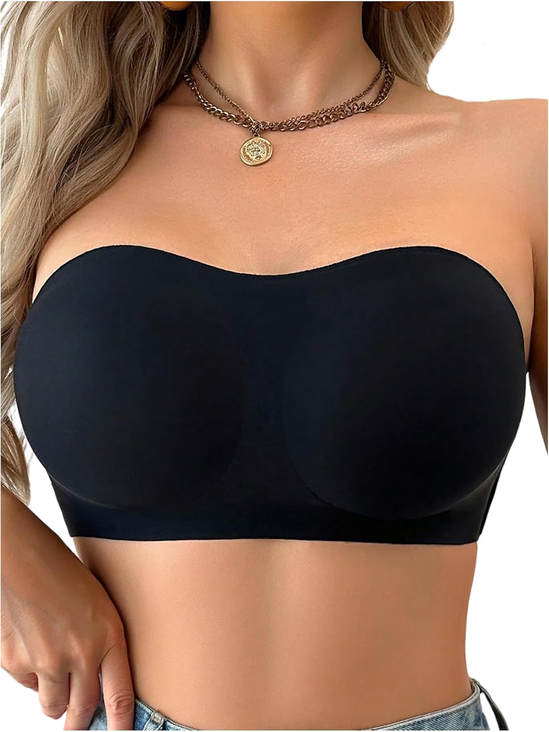 OYOANGLE Women's Criss Cross Strapless Bra Non Slip Padded Tube Top Bras Comfortable Bralettes