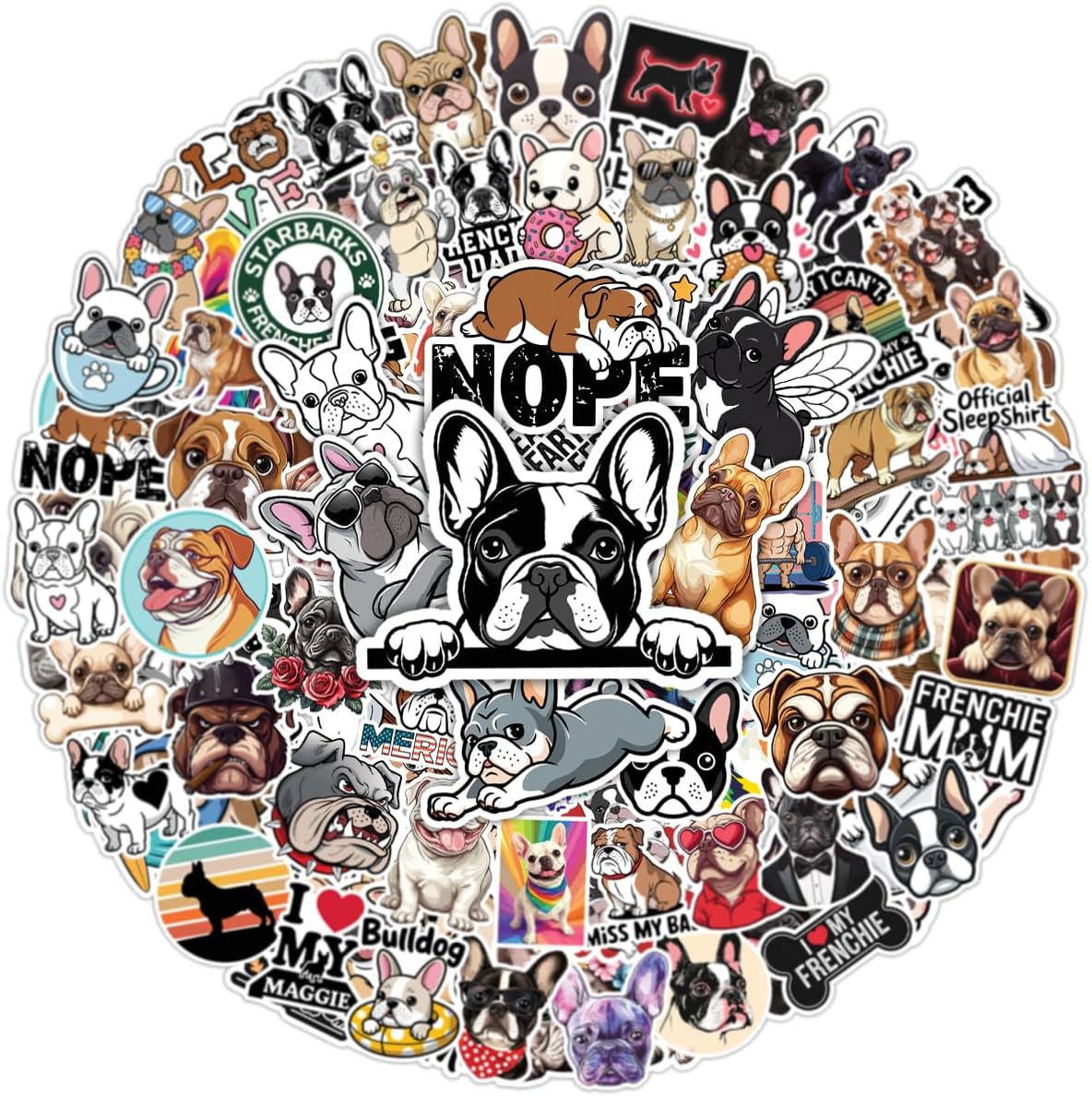 100pcs French Bulldog Stickers, Bull Dog Sticker Waterproof Decals for Water Bottles Laptop Luggage Computer Scrapbooking Teens Adults Girls Funny Party Birthday Decorations