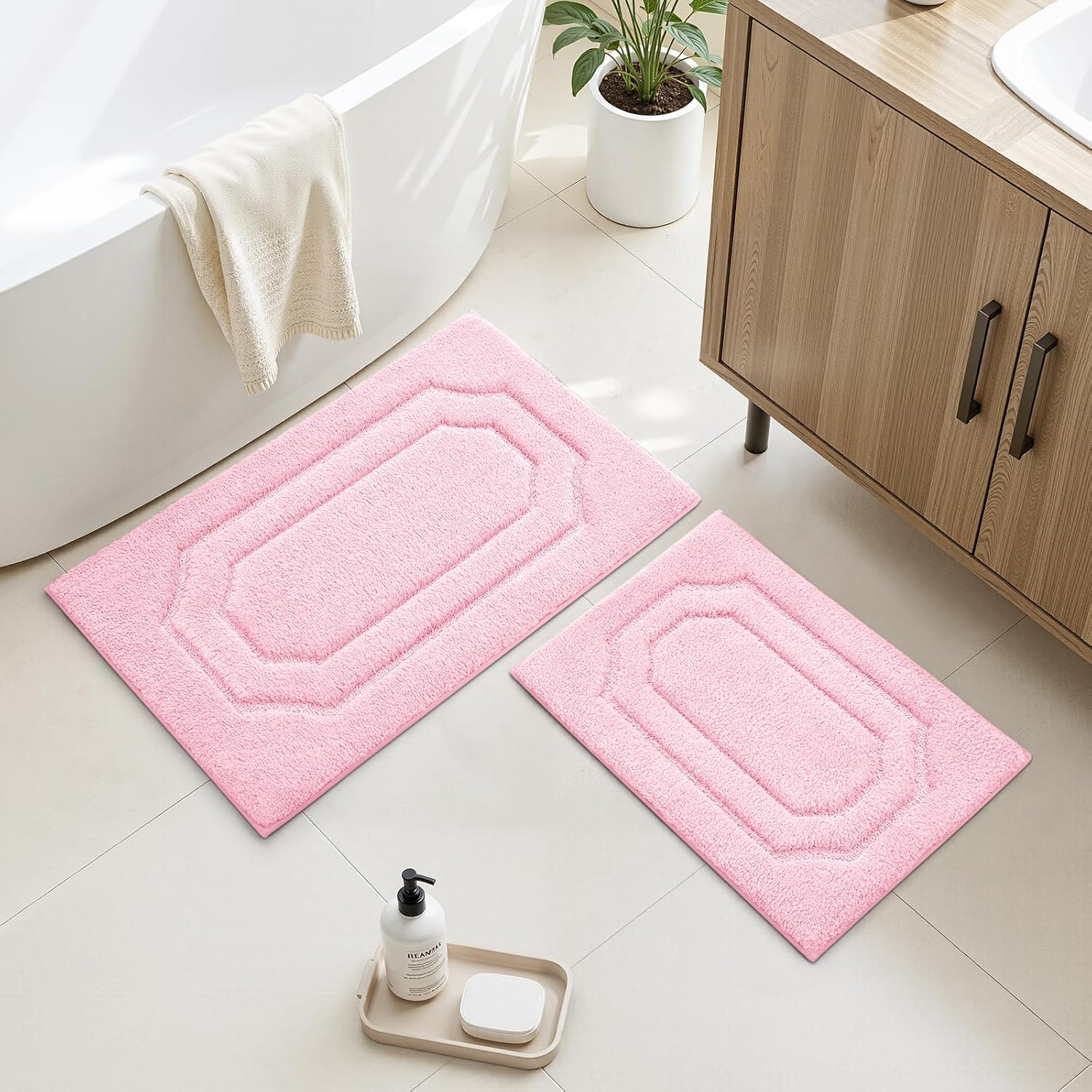 HOMEIDEAS Pink Bathroom Rugs, 2 Piece Extra Soft and Absorbent Microfiber Plush Bath Mat with Non Slip Backing(Light Pink)