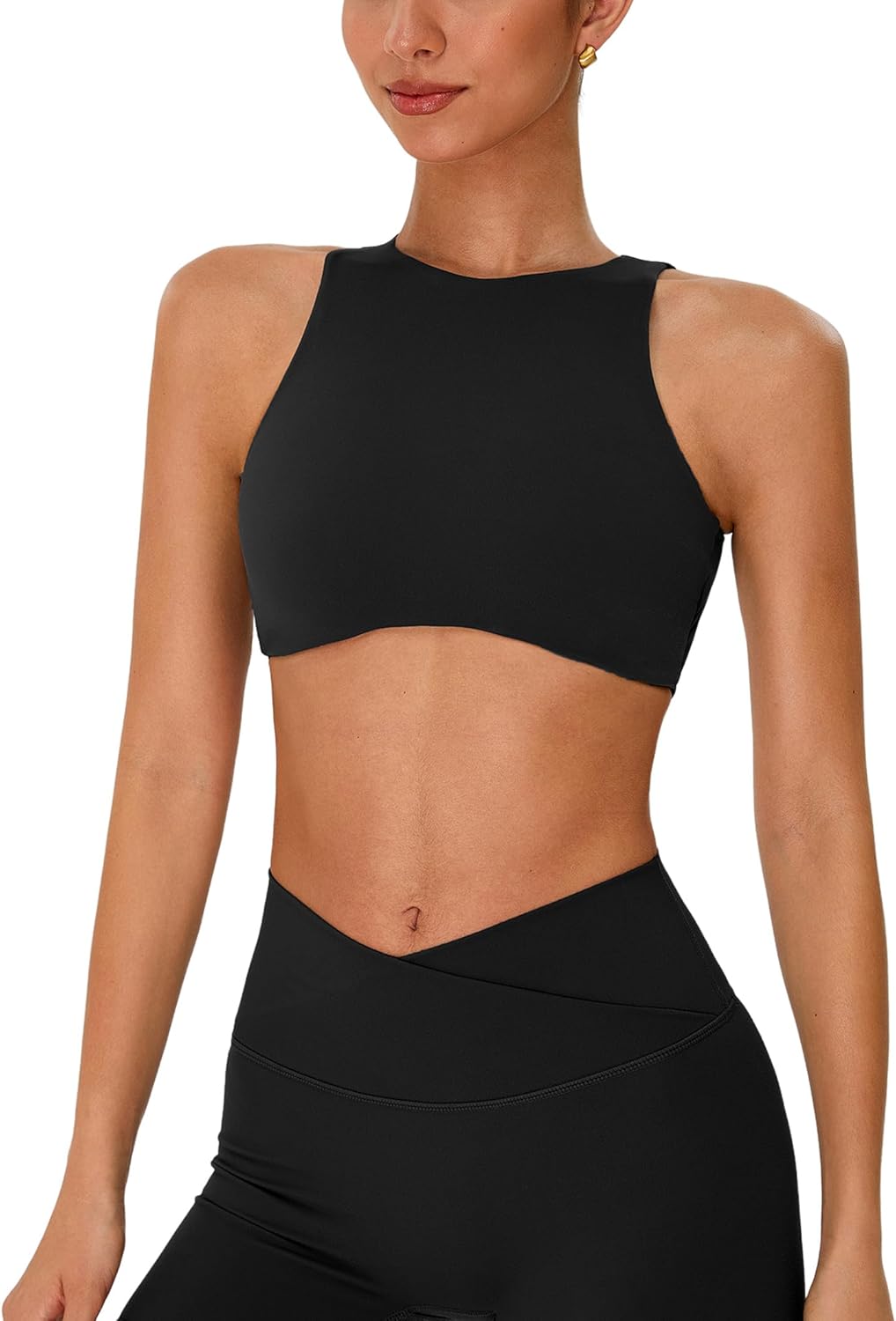 ABOCIW Womens High Neck Sports Bra Padded Cut Out Back Gym Workout Bra Sleeveless Yoga Pilates Crop Tops