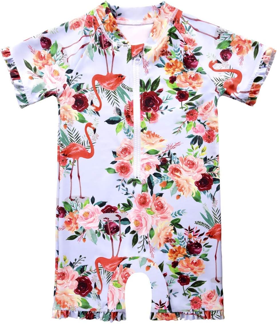 Cadocado Girls Print Zip Rash Guard Swimwear Ruffled UPF 50+ Short Sleeve Bathing Suit Swimsuit