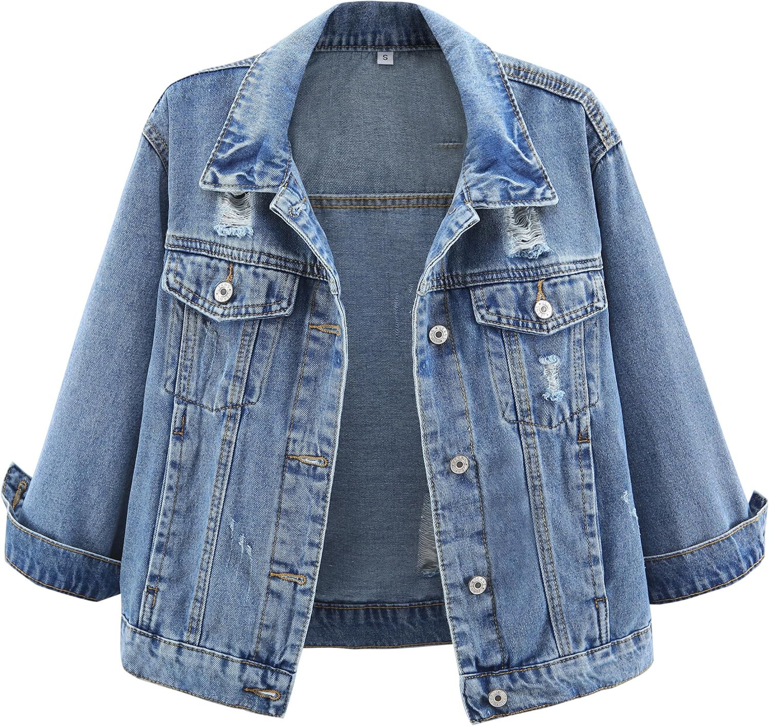 Kedera Womens Cropped Denim Jackets Distressed Ripped 3/4 Sleeve Jean Jacket Coats