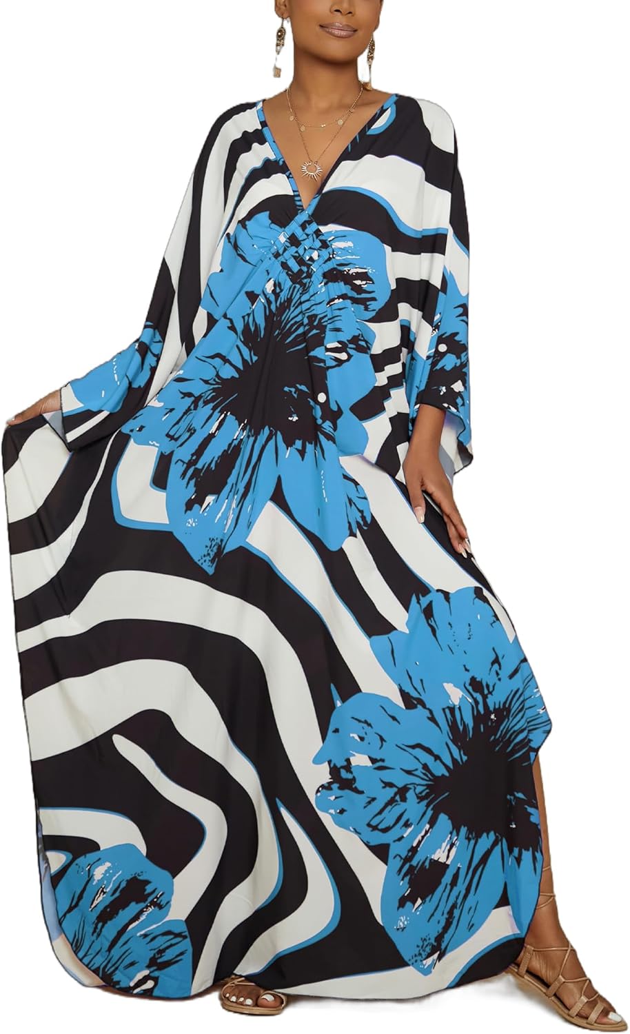 Bsubseach Women Floral Print Kaftan Dresses Plus Size Bathing Suit Cover Up Moo Moos Caftan Beach Dress for Swimwear Summer