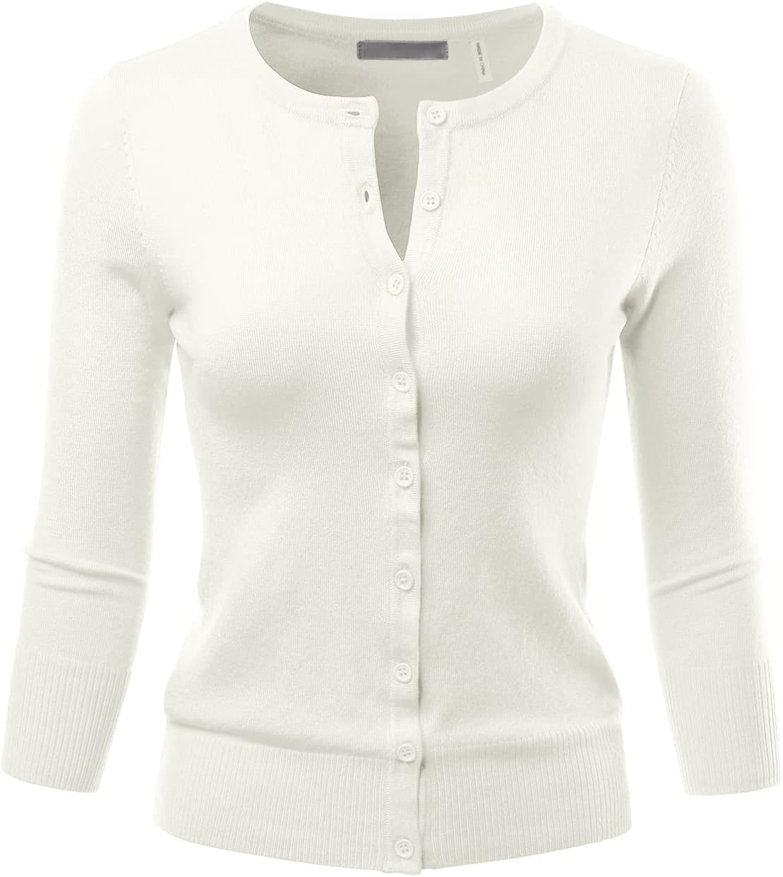 LALABEE Women's 3/4 Sleeve Crewneck Button Down Knit Sweater Cardigan (S~3XL)