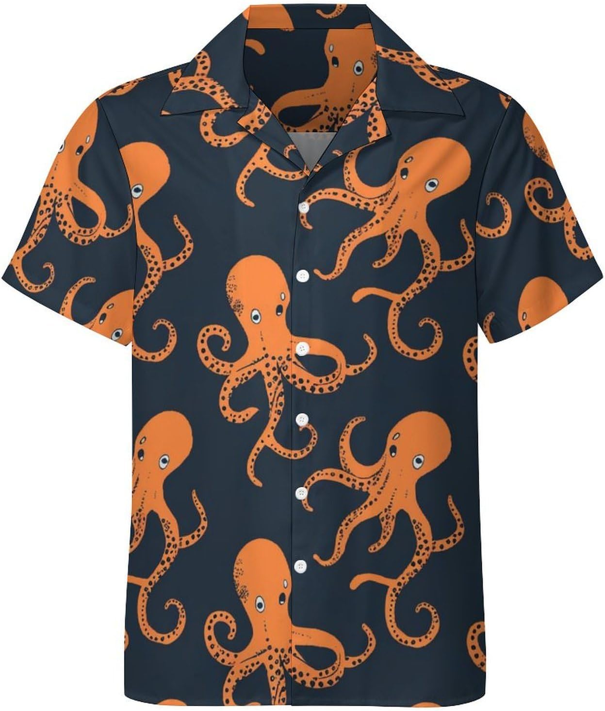 Men's Vintage Hawaiian Shirts Octopus Print Button Down Short Sleeve Shirts Casual Cuban Collar Shirt