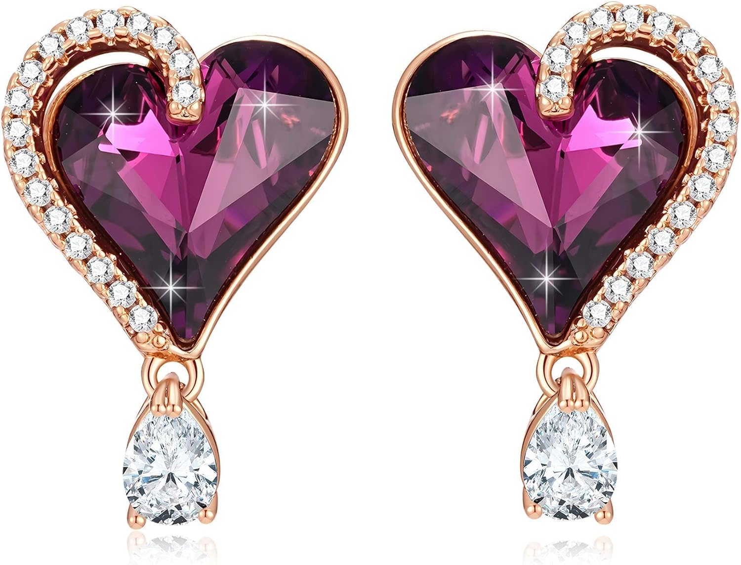 Austrian Crystal Heart Stud Earrings for Women Trendy Halo Drop Earrings 14K Gold Plated Hypoallergenic Jewelry