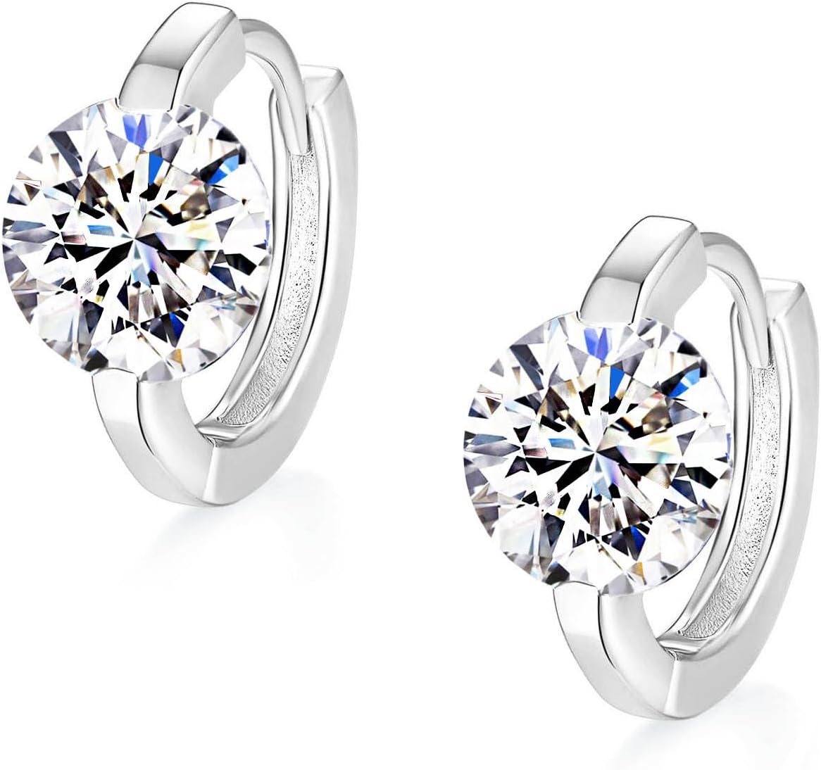 Moissanite Hoop Earrings, Moissanite Earring White Gold Plated Sterling Silver Huggie Hoop Earrings for Women Gift