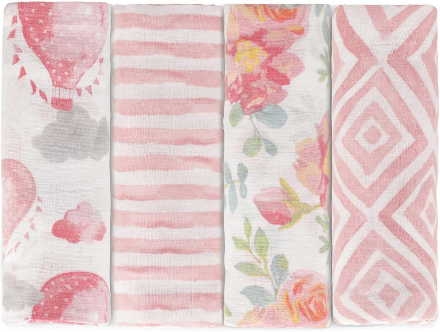 Featherhead™ 100% Cotton Muslin Swaddle Blankets for Baby Girl - Large 47”x 47” - Pre-Washed, Soft, & Breathable - Newborn Essential & Perfect Baby Registry Gift (4 Pack - Garden Floral)
