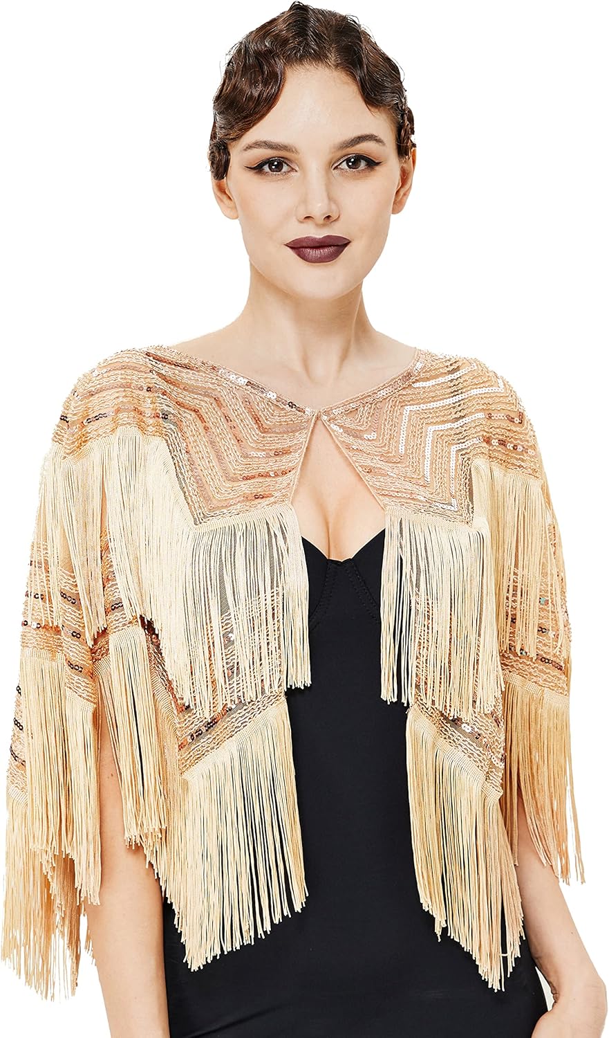 BABEYOND Gatsby Shawl Wrap for 1920s Evening Party Night Cape for Women Bridal Sequin Capelet