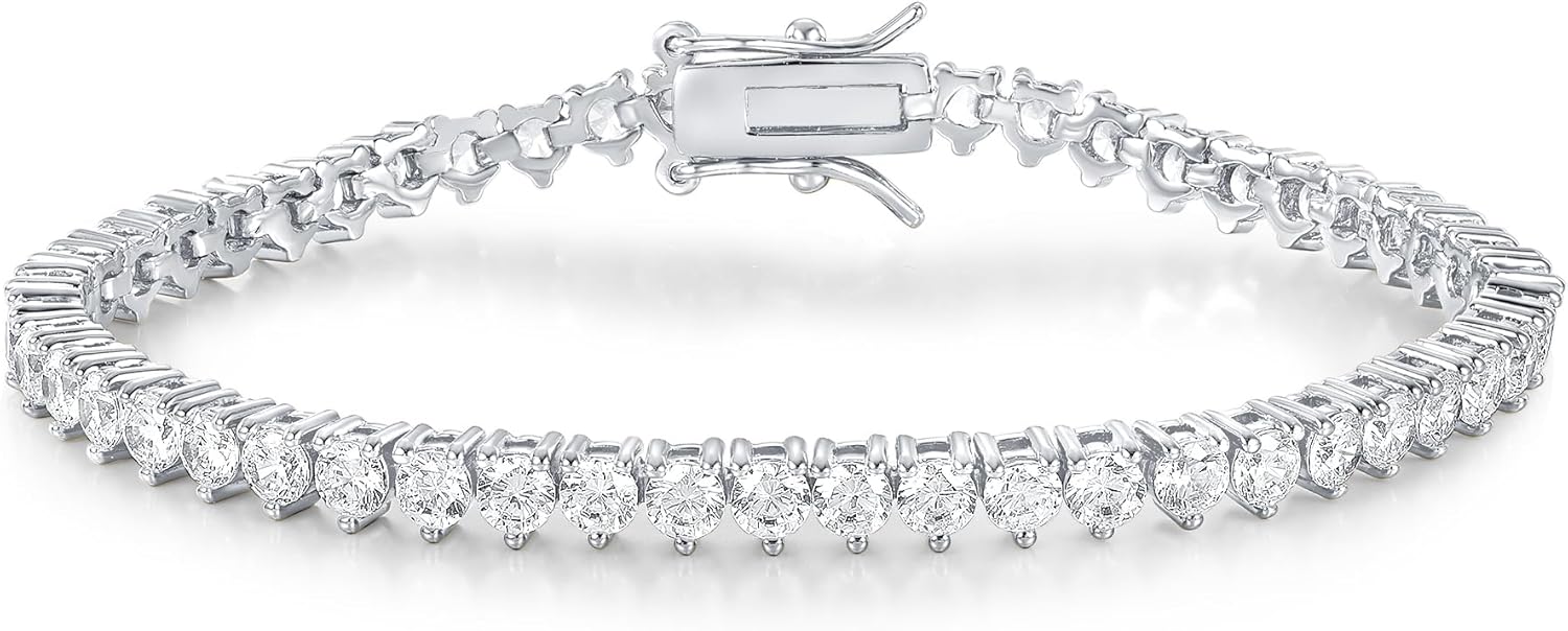 Gemsme 18K White/Yellow Gold Plated 4.0mm Cubic Zirconia Classic Tennis Bracelet 6-9 Inches