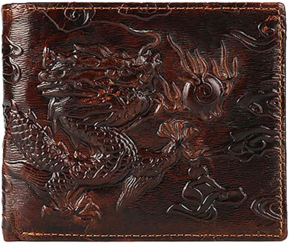 - [Vintage Genuine Leather Craftsmanship] This wallet is meticulously crafted from genuine leather, delivering a luxurious texture and durable build. The 3D dragon engraved design adds a unique touch, making it a collectible item for enthusiasts.