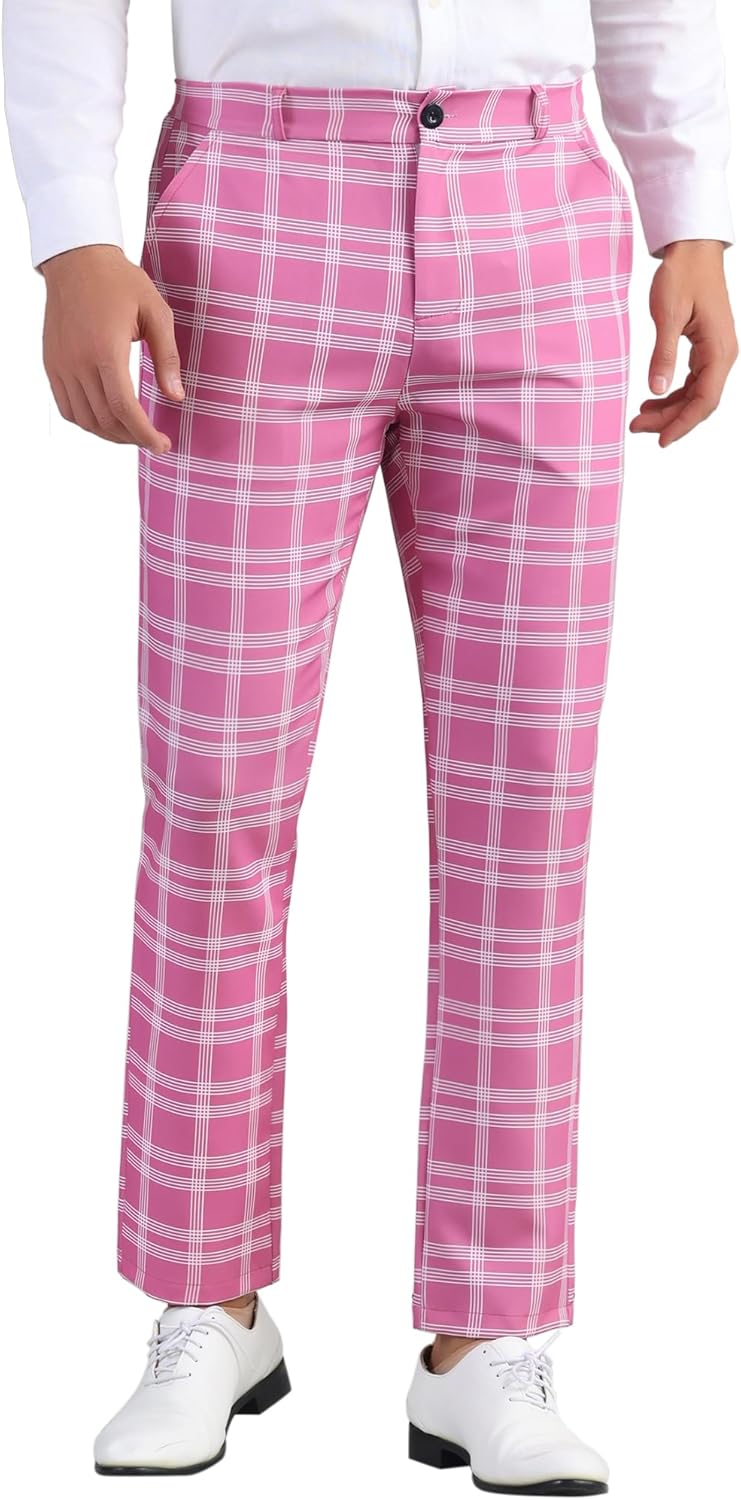 Lars Amadeus Men's Plaid Business Pants Regular Fit Formal Prom Checked Trousers