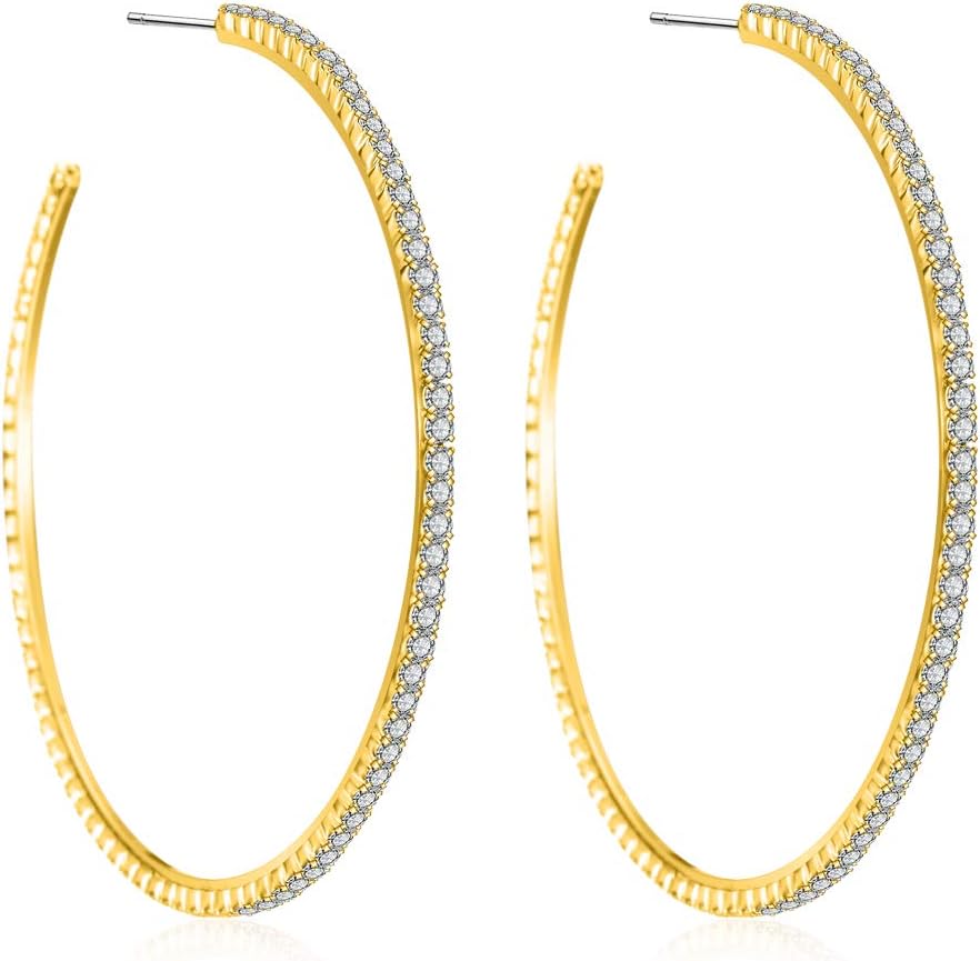 FAMARINE Gold Silver CZ Open C Hoops Earrings, Crystal Cubic Zirconia Hoop Earring Gift for Women