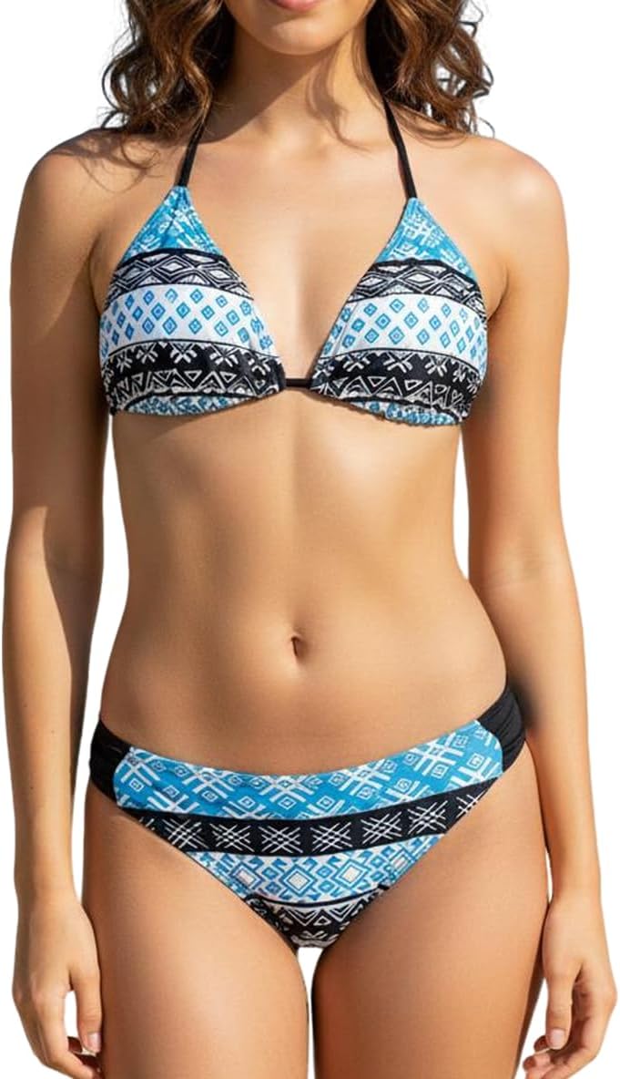 LIZENS Women's Two Piece Bikini Set Ethnic Print Halter Swimwear