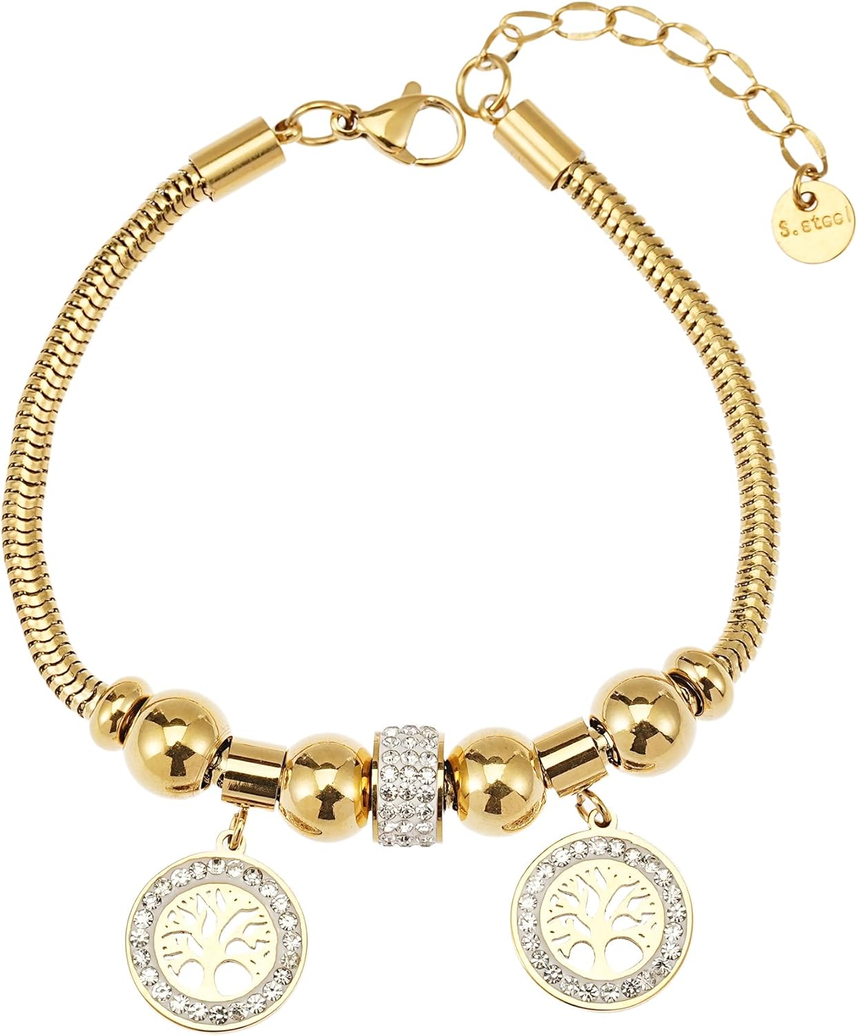 Evil Eye Bracelet for Women, Gold Tree of Life Adjustable Bracelet with Cubic Zirconia, Protection Jewelry for Everyday Wear