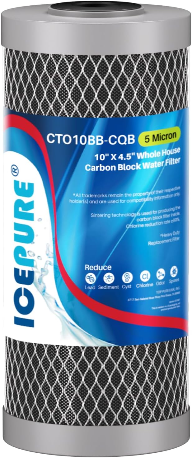 ICEPURE 5 Micron 4.5" x 10" CTO10BB-CQB Whole House Water Filter Upgraded Coconut Shell Activated Carbon Lead Remove Filter Replacement Cartridge, 1PACK