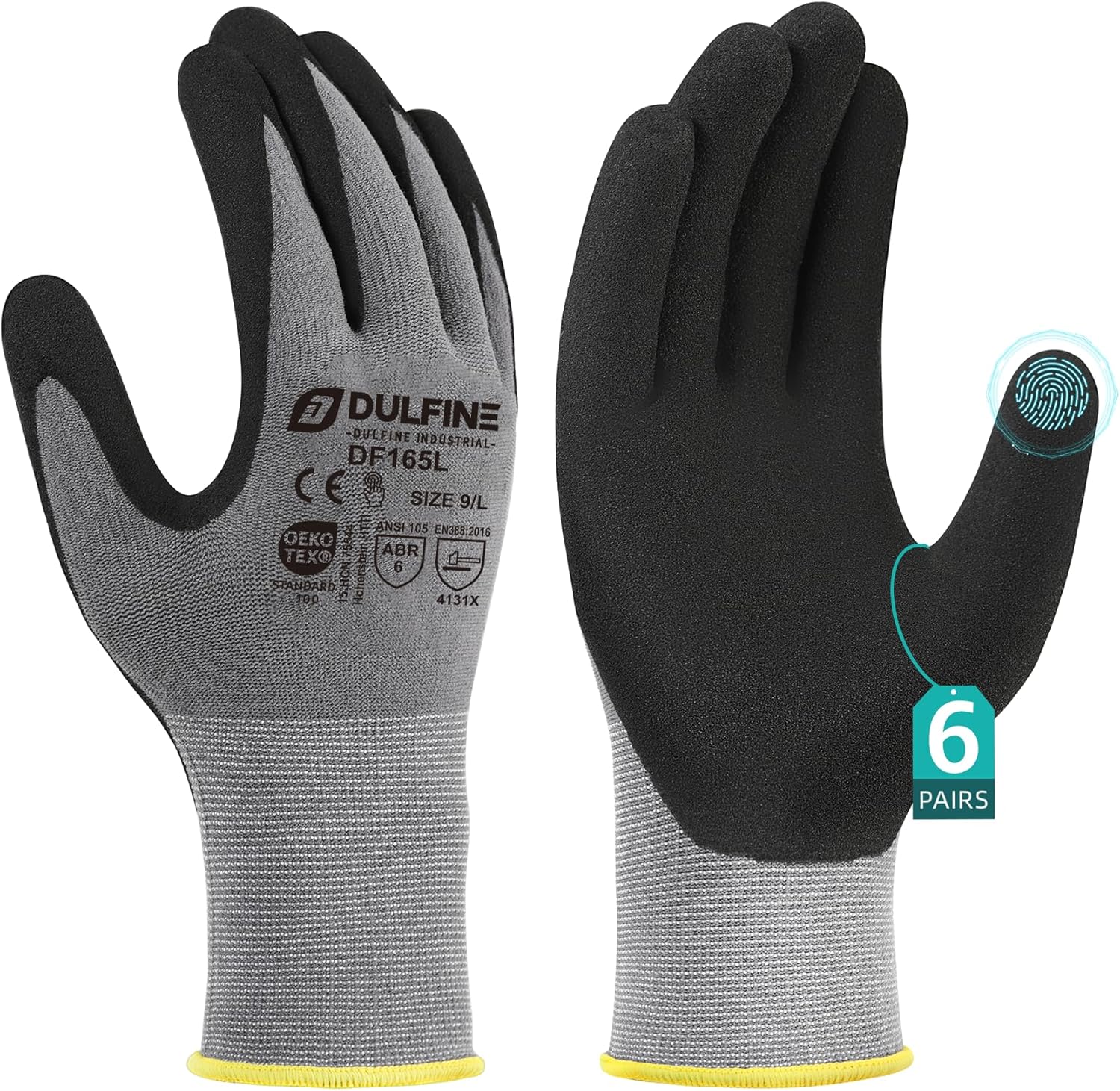 DULFINE Work Gloves for Men & Women,6 Pairs Pack,Touchscreen MicroFoam Nitrile,Ideal for General Purpose,Home Improvement