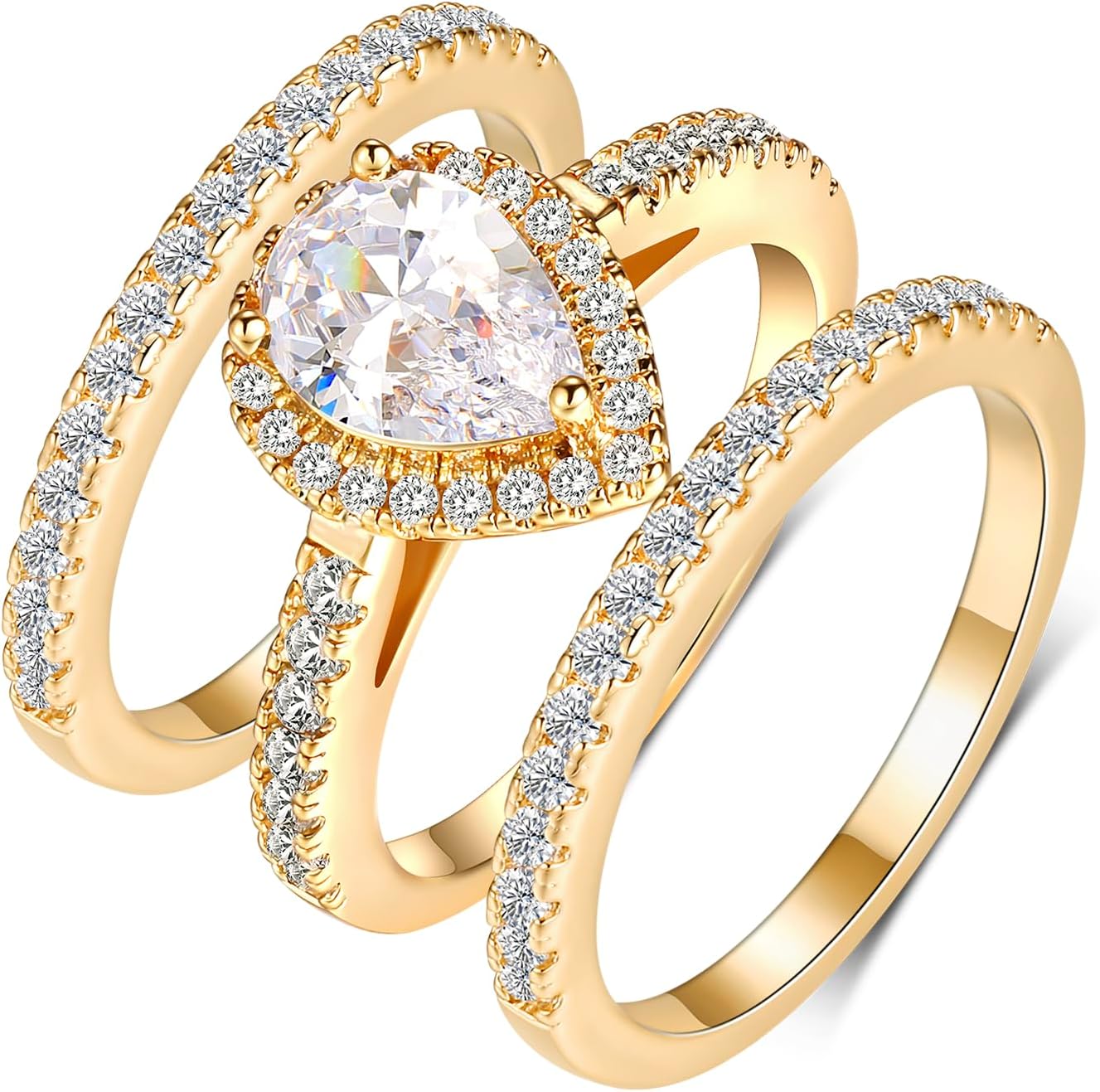 MDFUN Three in One Round/Oval/Eye/Teardrop Halo Wedding Bands Set Engagement Rings 18K Yellow Gold Plated Cubic Zirconia Promise Eternity Band for Women Size 5-10