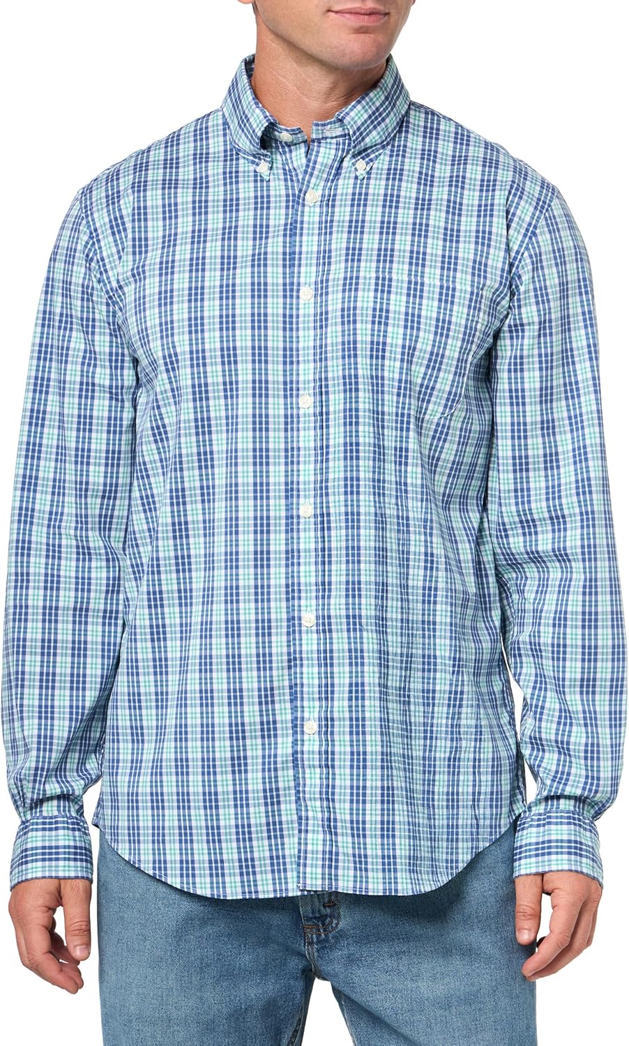 Stretch Cotton Non-Iron Oxford Polo Button-Down Collar, Outline Check Shirt