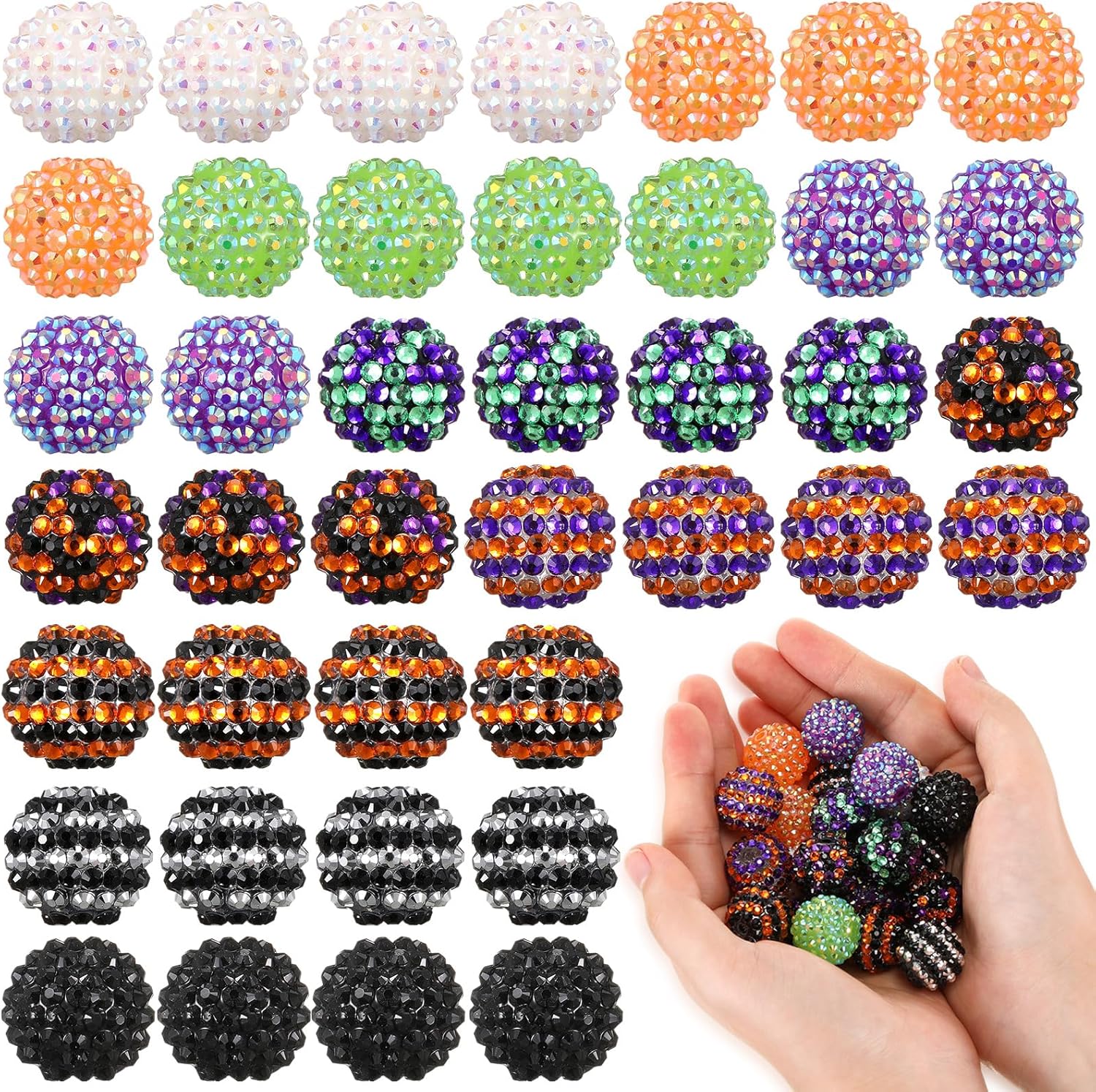 40 Pcs 20 mm Rhinestone Beads Bulk Crystal Round Disco Ball Chunky Bubblegum Beads for Pens Bracelets Charms Craft European Style Jewelry Making Supplies Christmas(Halloween Color)