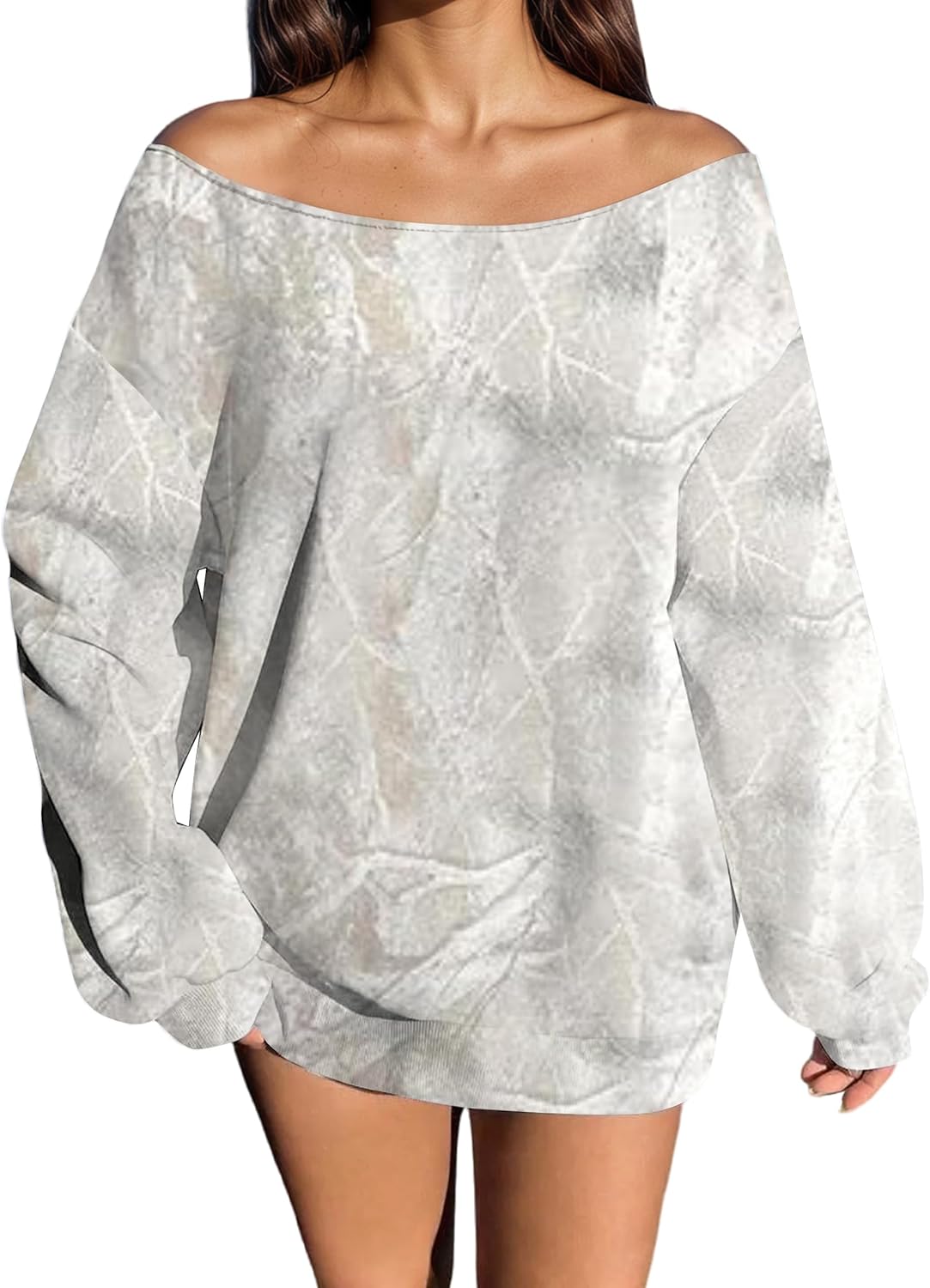 Womens Camo Off Shoulder Sweatshirt Oversized Graphic Maple Leaf Print Fleece Long Sleeve Trendy Pullover Hoodie