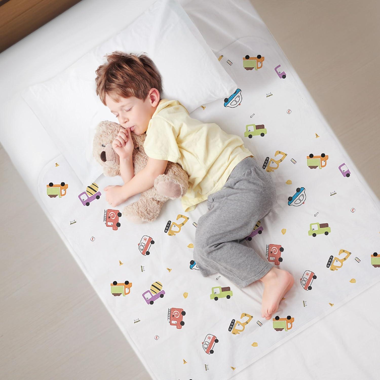 Tuckable Potty Training Pee Pads for Kids, Toddlers - 100% Waterproof, Non Slip Bed Wetting Pad, Twin Beds, Washable, Reusable - Truck and Toys Design