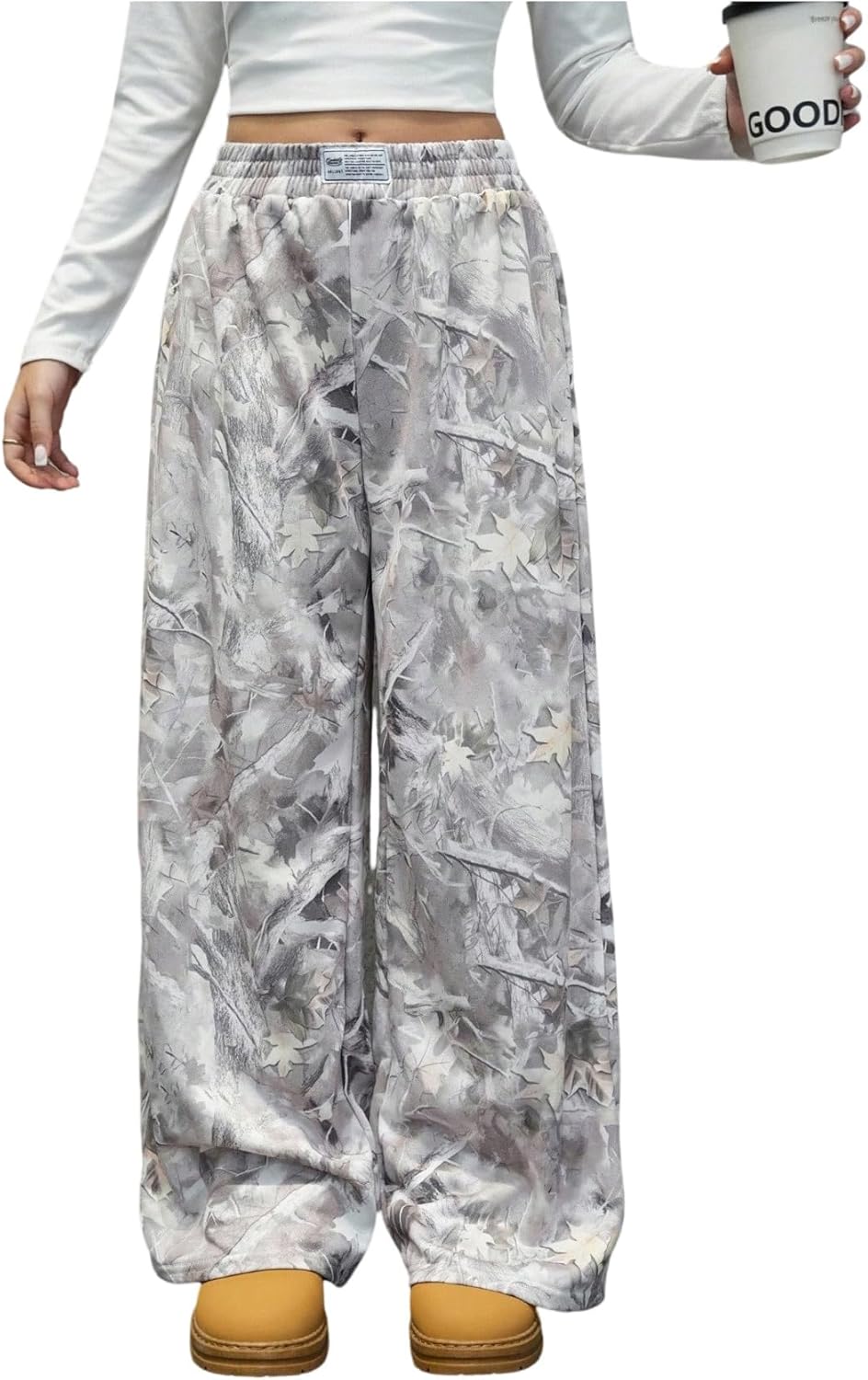 Girl's Camo Graphic Sweatpants Elastic Waisted Wide Leg Pants Athletic Pants