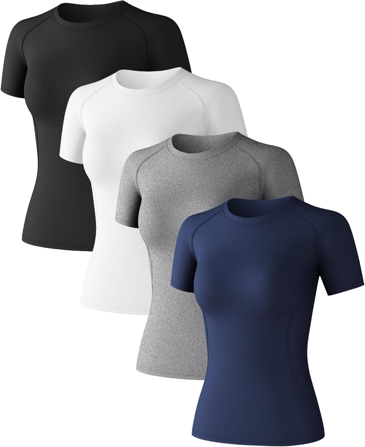 4 Pack Women's Long Sleeve Compression Shirts Athletic with T-Shirts Workout Tops for Gym Yoga Running