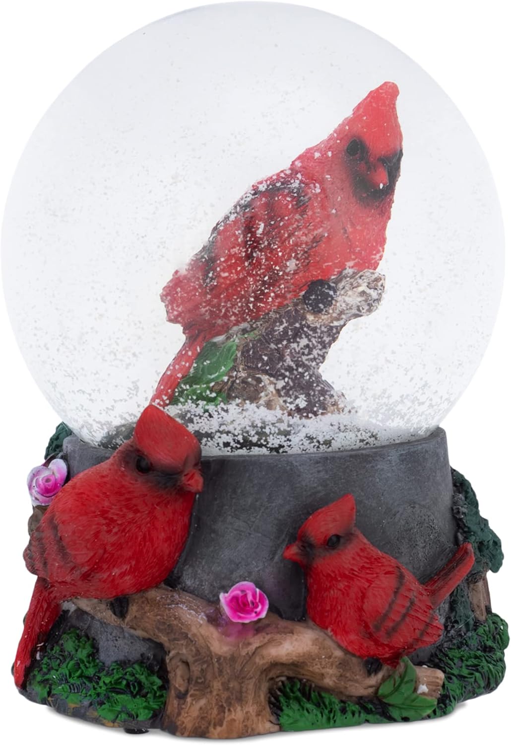 Elanze Designs Spring Blossom Cardinal Birds 100MM Sturdy Wind Up Musical Glitter Water Snow Globe Figurine Decoration Plays Tune Wonderful World