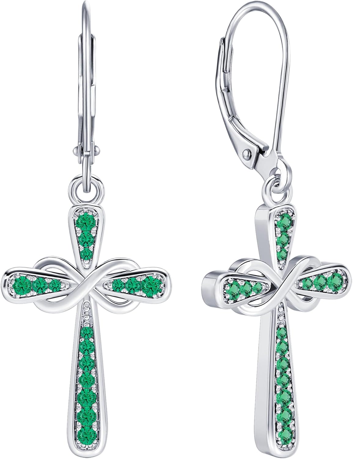 YL Cross Earrings 925 Sterling Silver Infinity Dangle Drop Earrings Birthstone Criss Leverback Jewelry