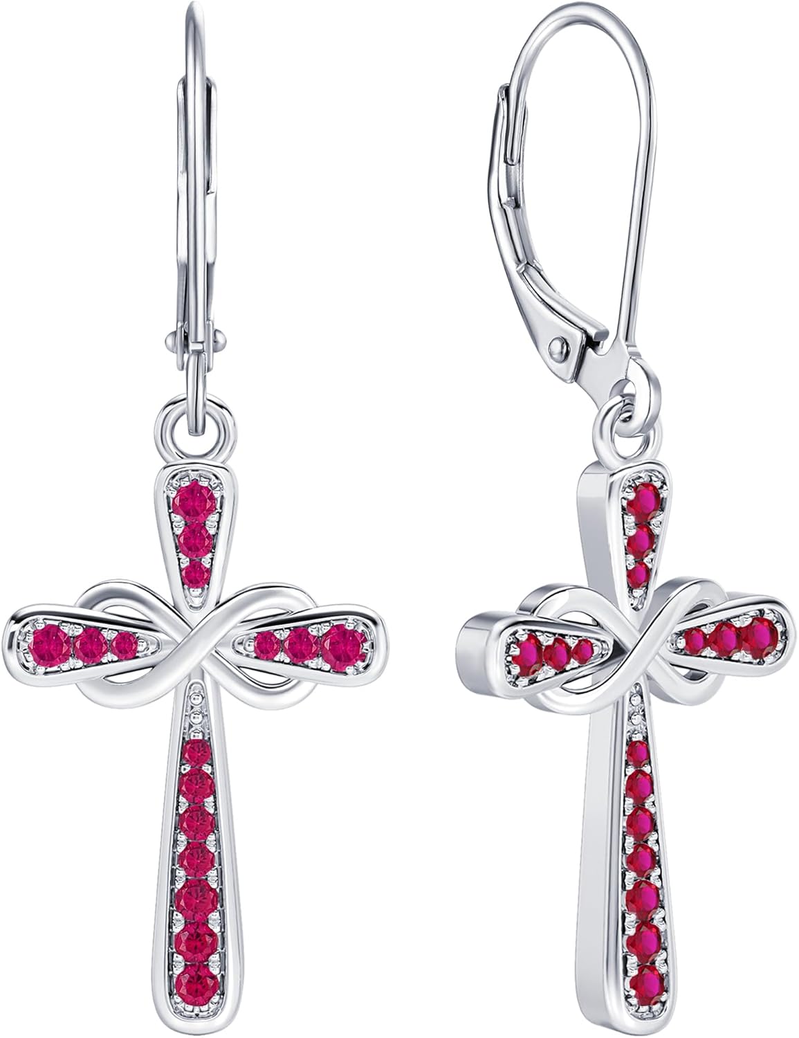 YL Cross Earrings 925 Sterling Silver Infinity Dangle Drop Earrings Birthstone Criss Leverback Jewelry
