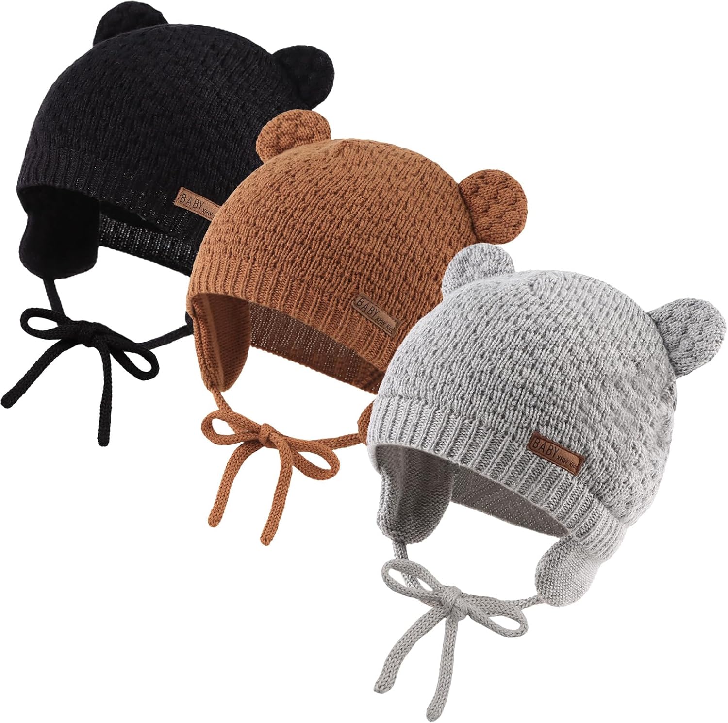 JANGANNSA Cute Knitted Boys Girls Christmas Beanie Warm Earflap Winter Hat Infant Toddler Baby Beanie 0-2Y