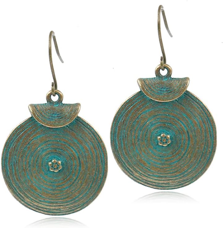 Handmade Unique Bohemian Tribal Hoop Spiral Earring Vintage Green Bronze Round Geometry Dangle Drop Earrings for Women Statement Jewelry Gifts