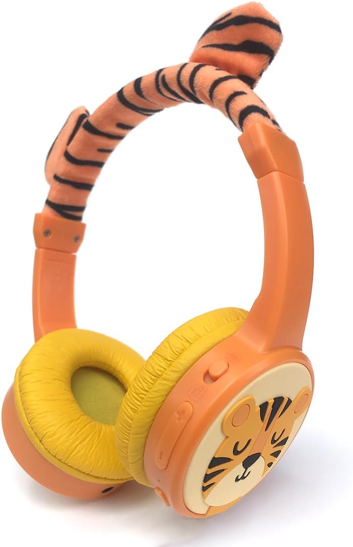 Kids Bluetooth Headphones, Wireless Headphone for Kids, 85dB Volume Limited, Built-in Mic, 3.5mm Aux Cord, Boys Girls Tiger Headset for School/Travel/Airplane