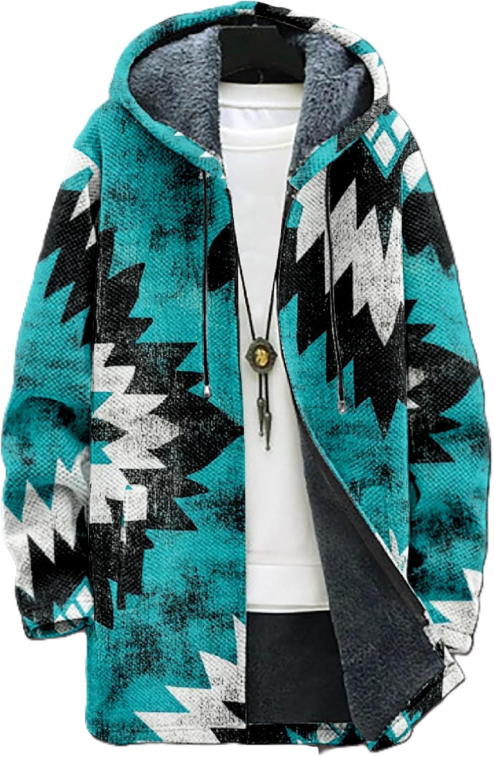 MARSVOVO Long Hooded Cardigan Men Lined Fleece Fashion Graphic Coat Fall And Winter Loose Casual Warm Hooded Jacket
